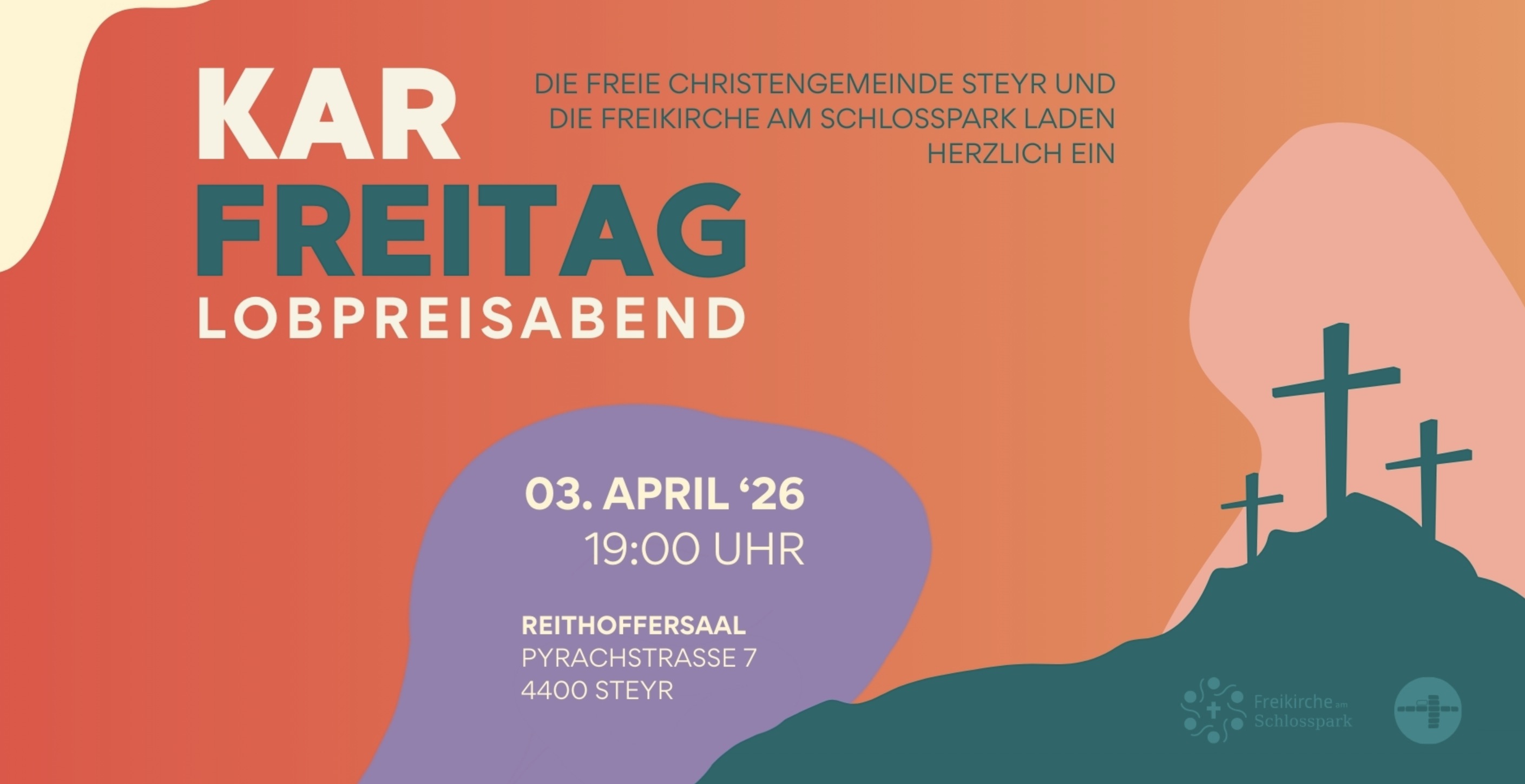 Am Karfreitag veranstalten wir gemeinsam mit Musikern der Freikirche am Schlosspark einen Lobpreisabend.